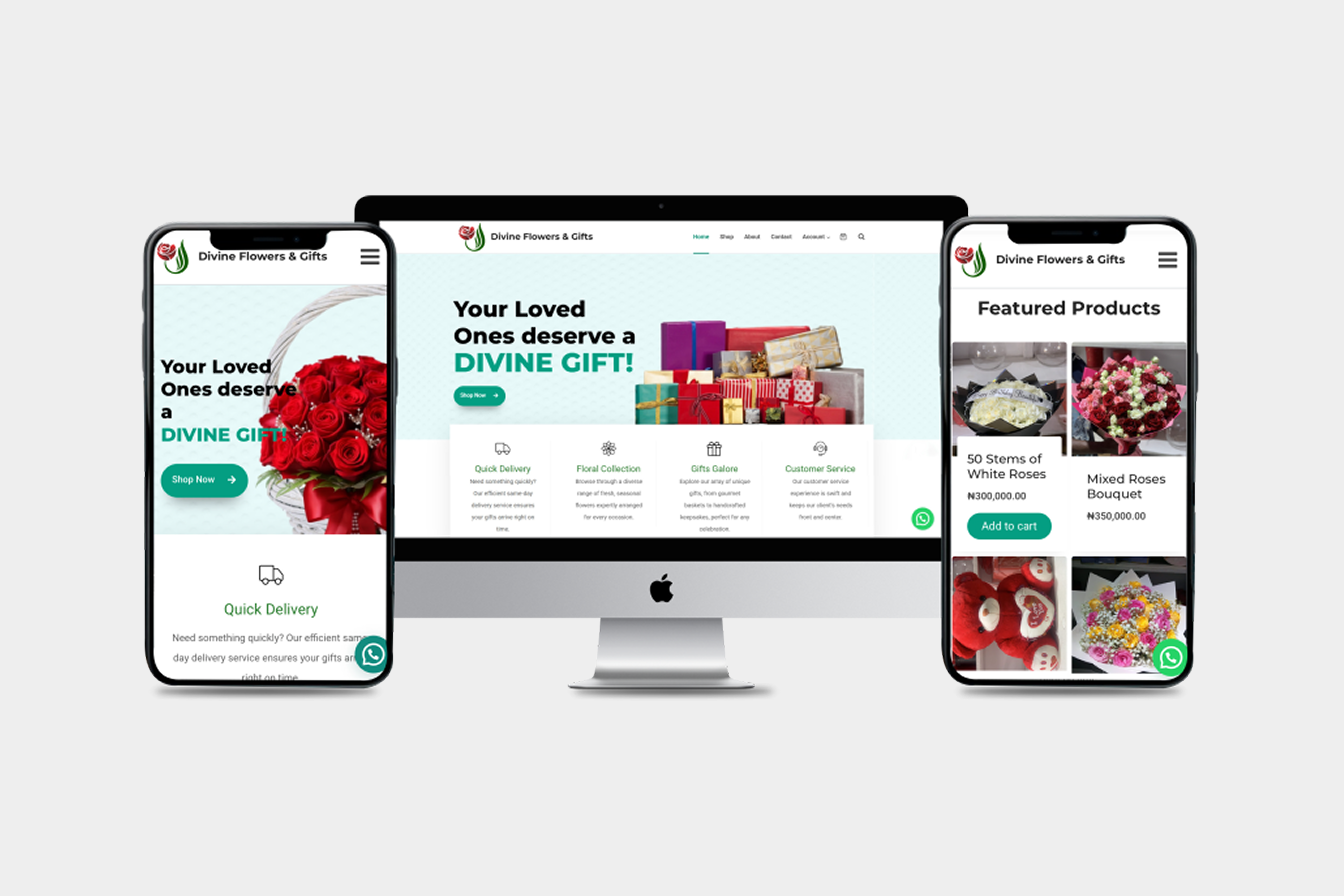 E-commerce Website developed for Divine Flowers and Gifts Company.